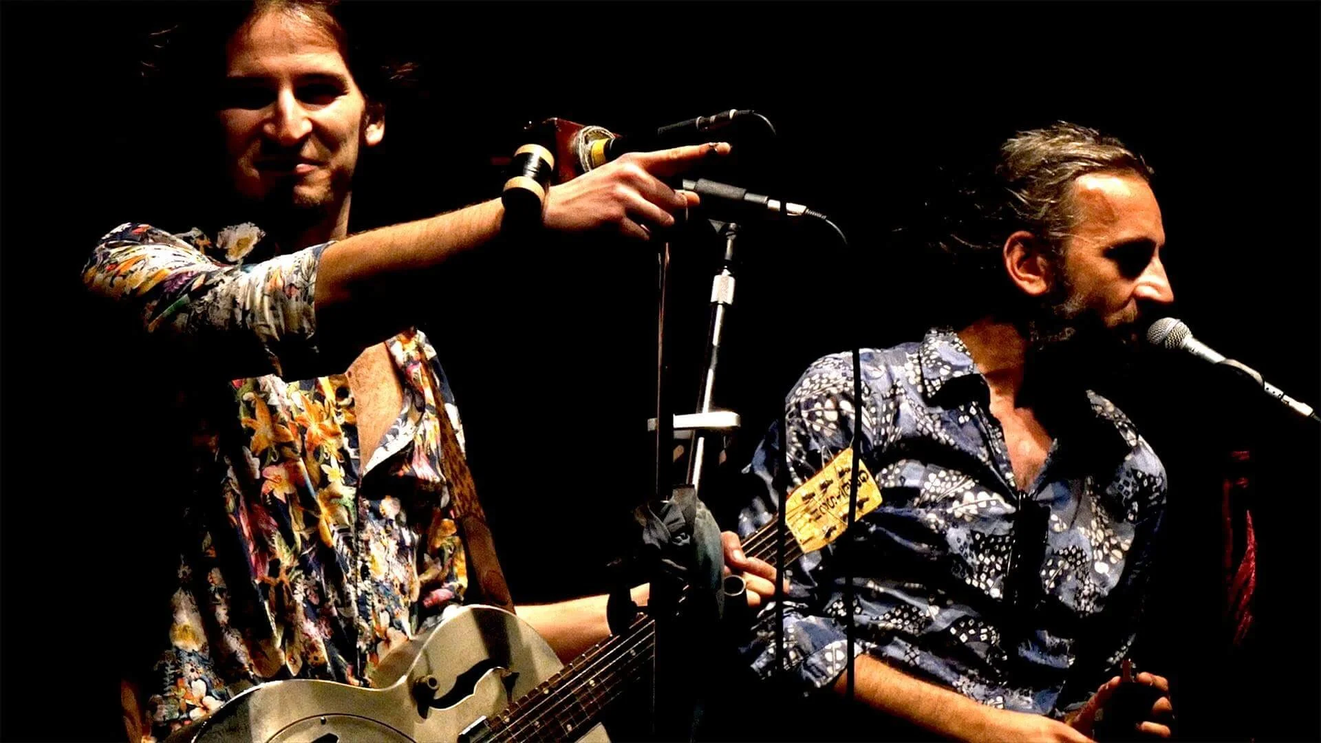 Vater und Sohn Domenico + Fabrizio Canale spielen Dobrogitarre, Geige, Bluesharp und zweistimmiger Gesang